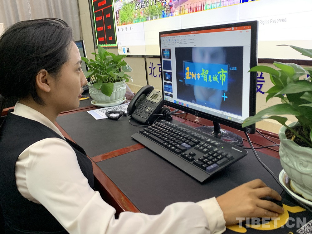 圖為工作人員向記者展示玉樹(shù)“智慧城市”有關(guān)內(nèi)容
