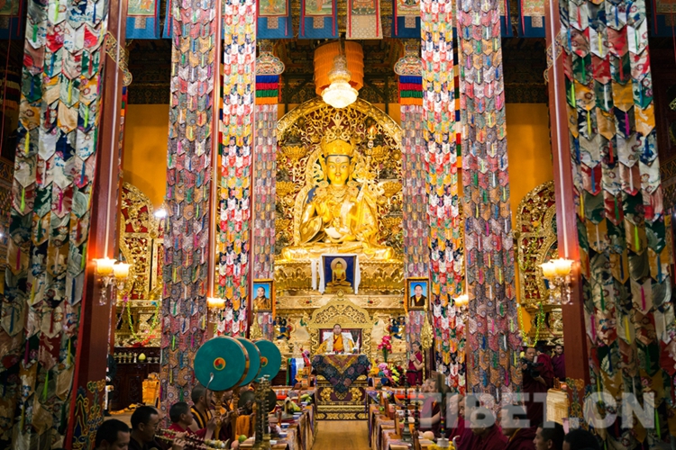 圖為十一世班禪在多東寺誦經(jīng) 攝影:鄭朔