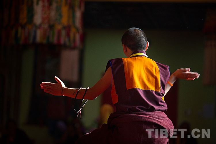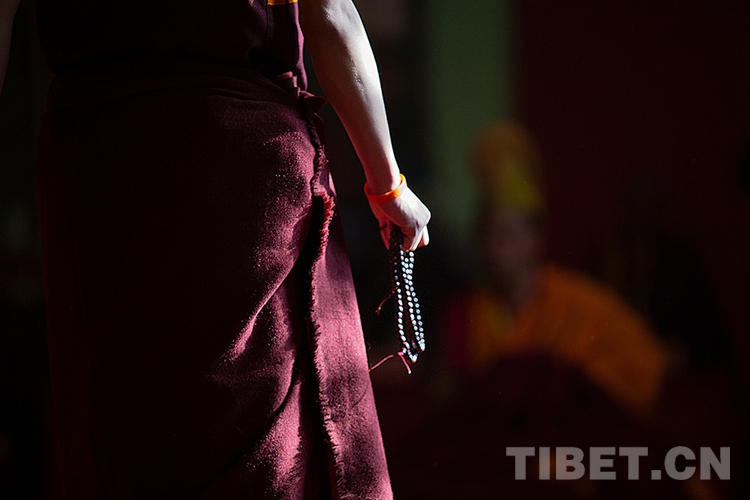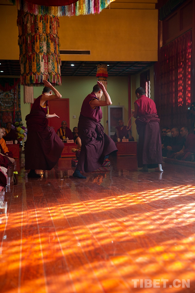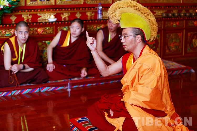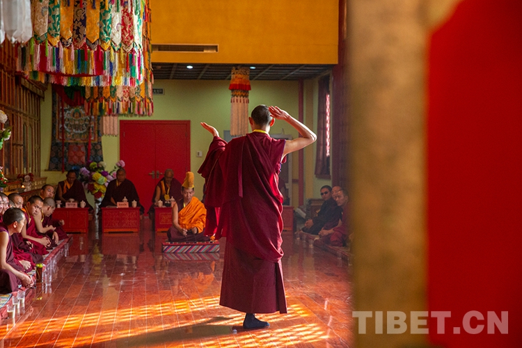 圖為藏傳佛教寧瑪派辯經(jīng)考試現(xiàn)場(chǎng)。