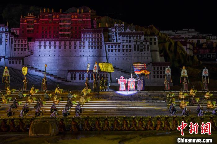 圖為《文成公主》藏文化大型史詩(shī)劇演出現(xiàn)場(chǎng)。何蓬磊 攝 圖片來(lái)源:中國(guó)新聞網(wǎng)