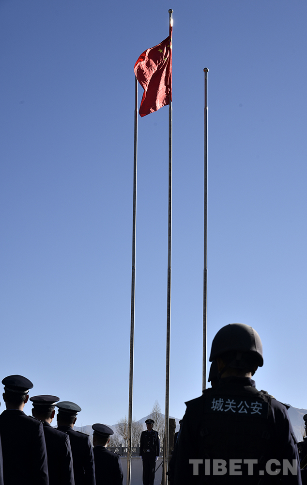 中國西藏網(wǎng)訊 伴隨著洪亮的國歌聲,一面五星紅旗冉冉升起。1月1日上午,西藏自治區(qū)拉薩市公安局城關(guān)公安分局納金派出所及轄區(qū)內(nèi)百余名群眾著盛裝齊聚一堂,舉行升國旗、慶元旦、喜迎“中國人民警察節(jié)”活動。