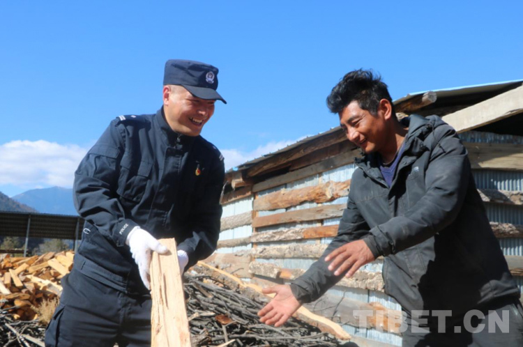在孤寡老人次珍阿媽家,邊境派出所的民警帶來了大米、面粉以及過冬的棉被?!澳銈兙腿邕@冬日的暖陽,每次過來總是讓我感覺暖暖的?!笨粗皆L的民警,次珍阿媽開心地說道。