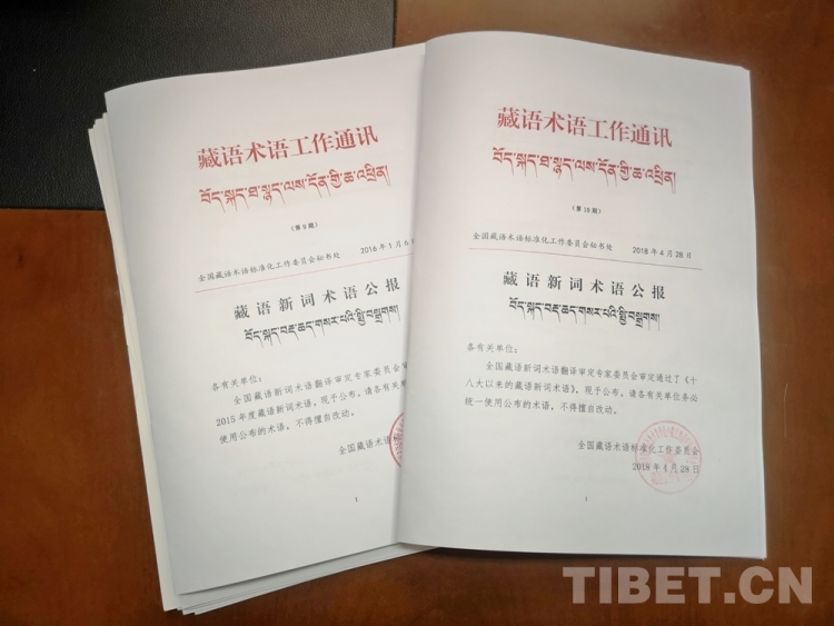 2014年,全國藏語術(shù)語標(biāo)準(zhǔn)化工作指導(dǎo)委員會(huì)成立,成員單位包括國家5個(gè)部委、西藏和涉藏州縣共16家單位。同年,藏語領(lǐng)域的第一個(gè)全國性專家組織——全國藏語新詞術(shù)語翻譯審定專家委員會(huì)成立,共有41名藏語領(lǐng)域的專家學(xué)者受聘擔(dān)任委員,負(fù)責(zé)藏語術(shù)語的翻譯審定工作。當(dāng)年還發(fā)布了《全國藏語術(shù)語標(biāo)準(zhǔn)化工作委員會(huì)新詞術(shù)語藏文翻譯規(guī)范和推廣應(yīng)用辦法》,形成了藏語新詞術(shù)語的國家級(jí)標(biāo)準(zhǔn),使之后的藏語新詞術(shù)語從搜集整理、翻譯審定到推廣應(yīng)用都做到有章可循,積極推進(jìn)全國藏語新詞術(shù)語的規(guī)范和統(tǒng)一。