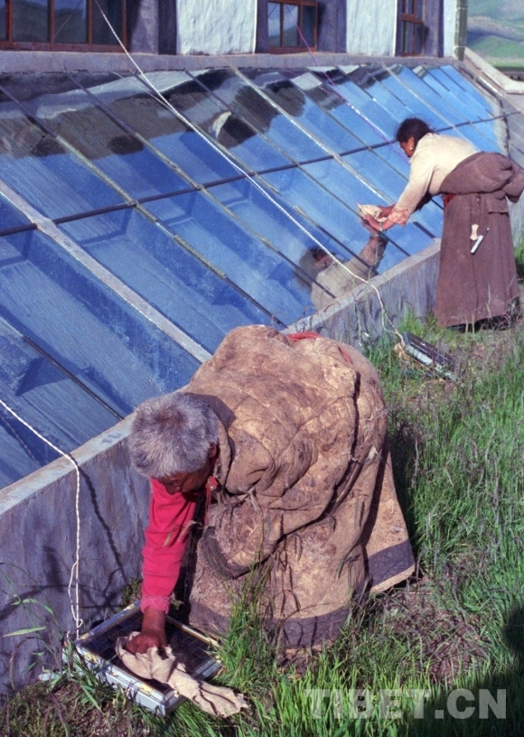 藏北人除了用太陽(yáng)能發(fā)電和燒水做飯外,還用它進(jìn)行溫室種植、室內(nèi)取暖等。在藏北西部,拓荒者們將太陽(yáng)能用于蔬菜生產(chǎn)后,使這里不再為吃不到新鮮蔬菜而發(fā)愁,甚至冬季也能吃到自己生產(chǎn)的新鮮蔬菜了。