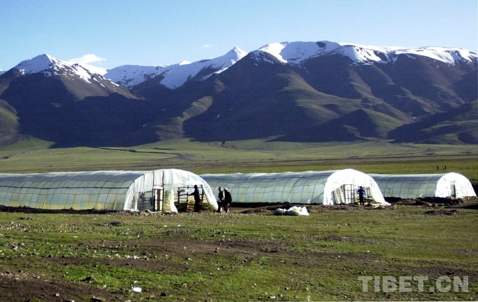 圖為藏北申扎縣城附近新建的太陽(yáng)能蔬菜大棚,解決了當(dāng)?shù)厝罕姵圆穗y的問(wèn)題 唐召明2001年7月4日攝