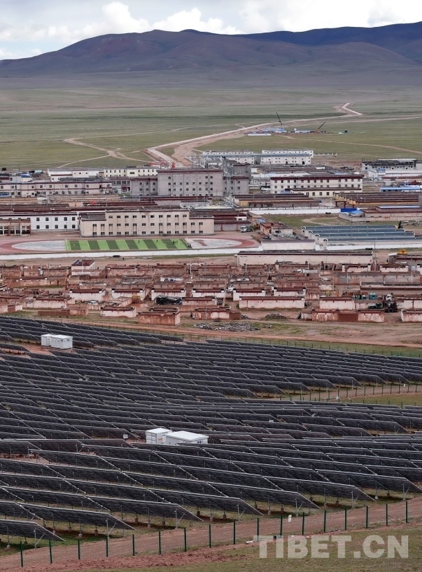 圖為藏北雙湖縣新建成的太陽(yáng)能光伏電站。照片前景所豎立的成片黑色板是用來(lái)發(fā)電的硅光電池板 唐召明2017年7月25日攝
