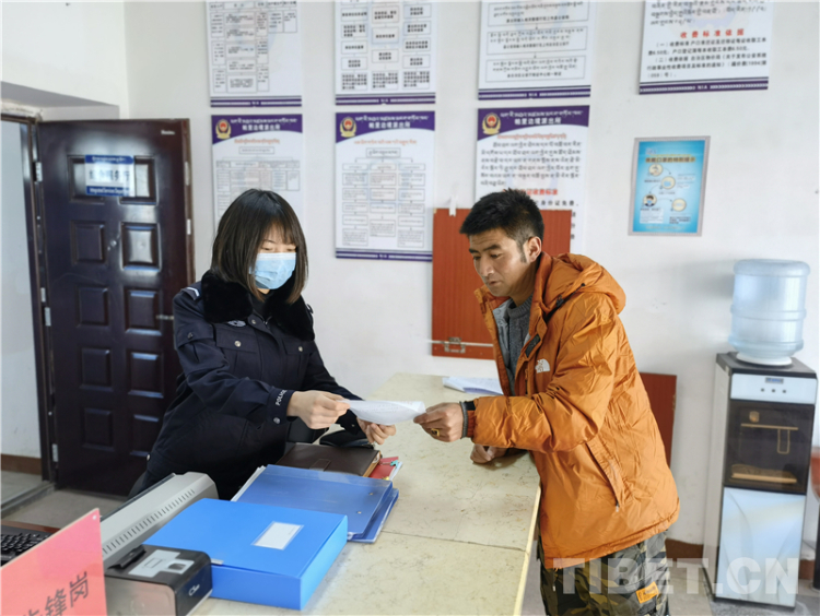 帕里邊境派出所辦證大廳“嚴(yán)格執(zhí)法,熱情服務(wù)”四個大字在警徽的映襯下,顯得格外的莊重。作為總站辦理戶籍業(yè)務(wù)的第一試點單位,帕里邊境派出所也發(fā)揮了很好的帶頭作用,普布桑珠副所長帶我們了解了當(dāng)?shù)氐木游瘯?,各類轄區(qū)戶籍證明材料以及通行證、戶口證件辦理的流程等,也讓我們對基層民警的工作有了初步的了解。