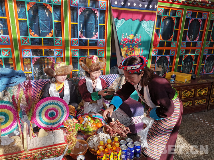 在西嘎拉村普瓊家,一進(jìn)門(mén),普瓊的女兒就為新到的“貴客”獻(xiàn)上潔白的哈達(dá),并祝福他們藏歷新年快樂(lè)。