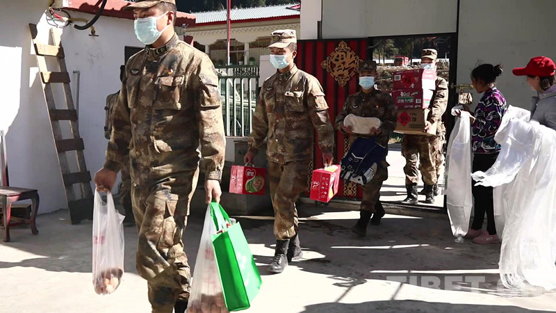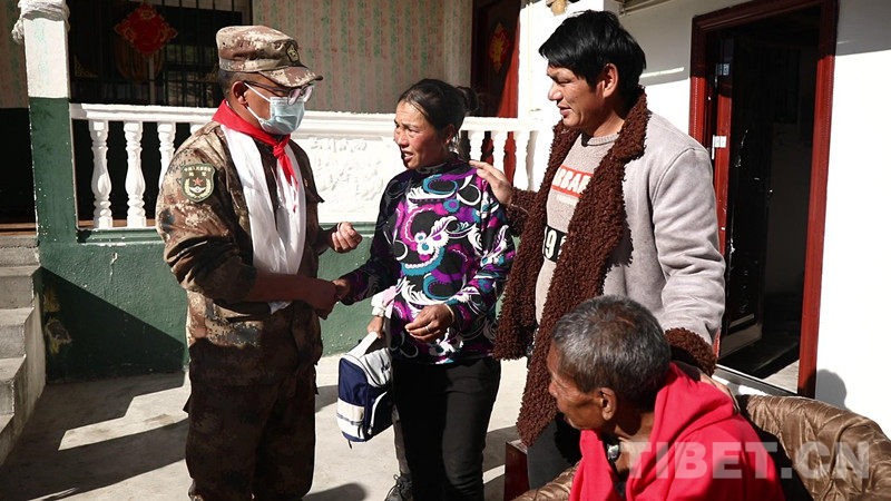 圖為官兵們帶著禮物來到扎央老人家中