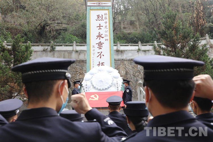 圖為西藏聶拉木出入境邊防檢查站民警到樟木烈士陵園開(kāi)展清明節(jié)祭奠革命先烈活動(dòng) 攝影:索朗次仁