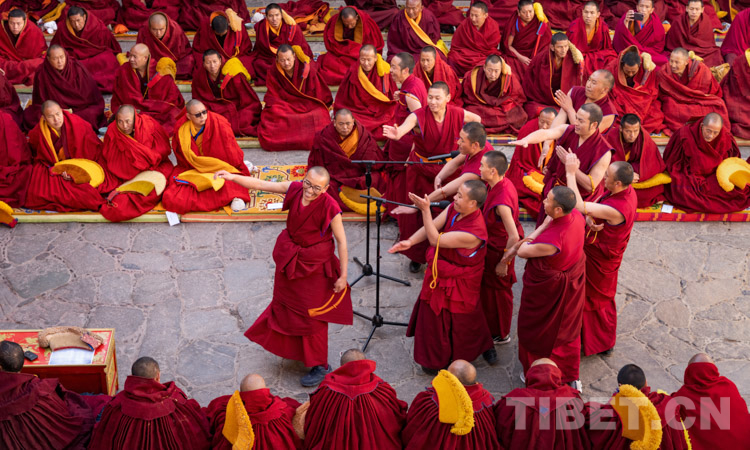 當(dāng)日,在立宗答辯活動(dòng)中,考僧們圍繞陪考僧人所提有關(guān)五部經(jīng)典方面的內(nèi)容進(jìn)行了精彩答辯。共有來自拉薩、日喀則、山南、昌都、那曲市、云南迪慶州有關(guān)寺廟的13名考僧獲得了格西拉讓巴學(xué)位。隨后,西藏自治區(qū)政府領(lǐng)導(dǎo)向獲得學(xué)位的考僧贈(zèng)送五彩緞、干果、袈裟和禮金。