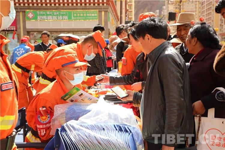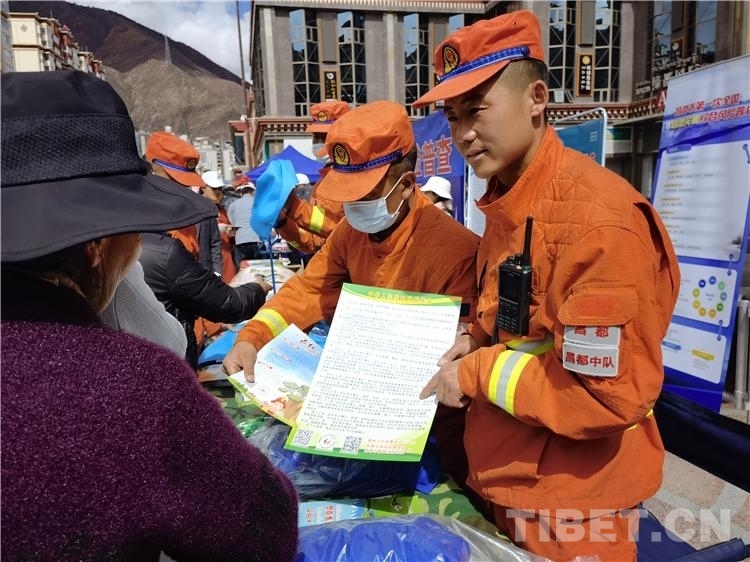 中隊指戰(zhàn)員同卡若區(qū)應(yīng)急管理局工作人員一起走上街頭,在昌都市茶馬廣場、昌慶街等人員密集的鬧市區(qū),向過往群眾認真講解防災(zāi)減災(zāi)知識,發(fā)放印有地震自救互救、防火安全常識、抗洪搶險等標語的畫冊,及防火宣傳小帽、防火宣傳圓珠筆、購物袋等宣傳物品。
