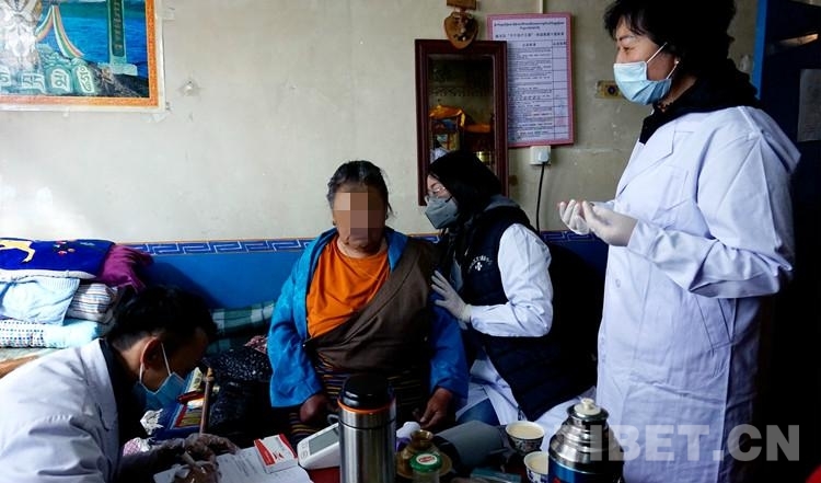 圖為2020年4月9日,北京中日友好醫(yī)院援藏專家(右一、右二)和八廓街道社區(qū)衛(wèi)生服務(wù)中心醫(yī)生(左一)上門為家庭醫(yī)生簽約老人服務(wù) 攝影:王媛媛