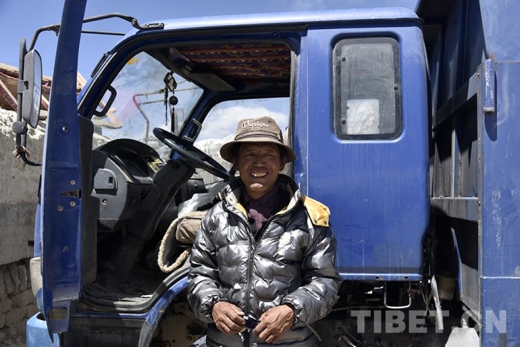 圖為2021年4月,阿里地區(qū)改則縣麻米鄉(xiāng)茶措村村民扎布站在新購買的貨車前 攝影:王媛媛