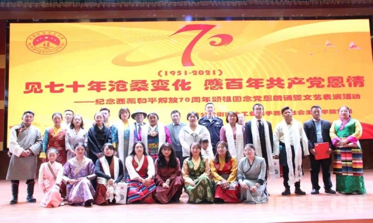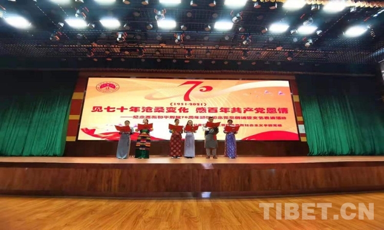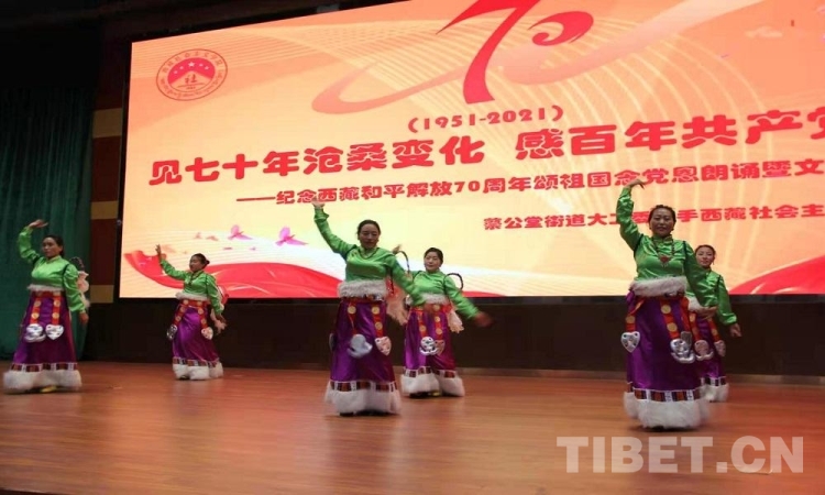 5月23日是西藏和平解放70 周年紀(jì)念日。23日上午,由西藏自治區(qū)拉薩市蔡公堂街道和西藏社會(huì)主義學(xué)院共同舉辦的紀(jì)念西藏和平解放70周年頌祖國(guó)、念黨恩朗誦暨文藝表演活動(dòng)舉行。現(xiàn)場(chǎng)鮮花嬌艷,燈光炫目,旋律悠揚(yáng),歌聲嘹亮。