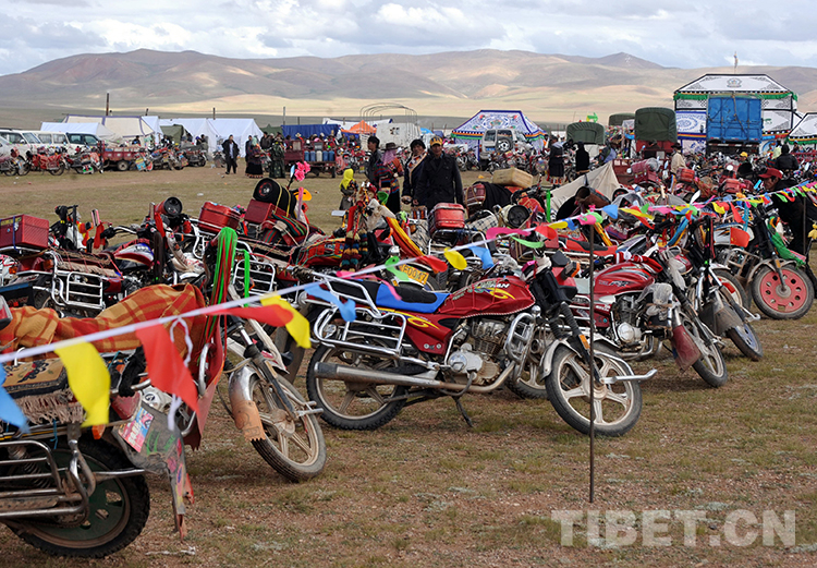這是在雙湖“撤區(qū)建縣”慶?;顒由希S多牧民騎著自家摩托車遠道而來(唐召明2013年7月26日攝)