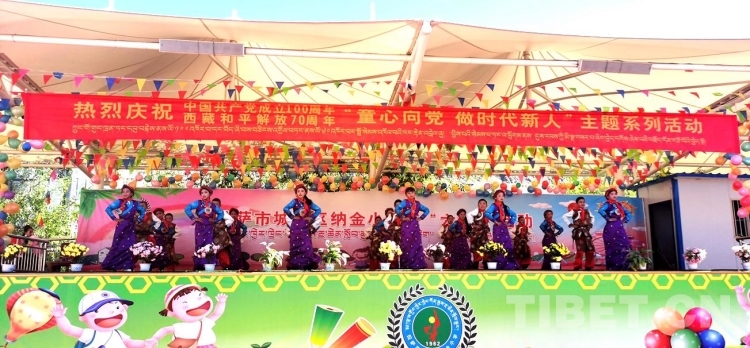 圖為西藏自治區(qū)拉薩市城關(guān)區(qū)納金小學(xué)“童心向黨、做時(shí)代新人”六一兒童節(jié)活動(dòng)現(xiàn)場