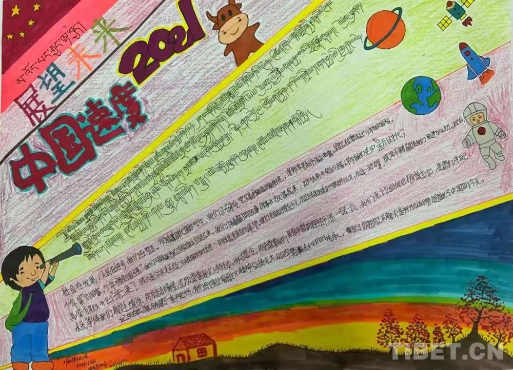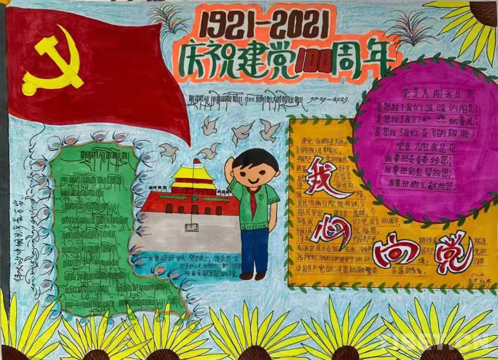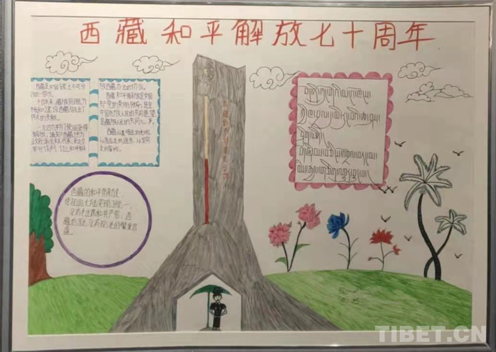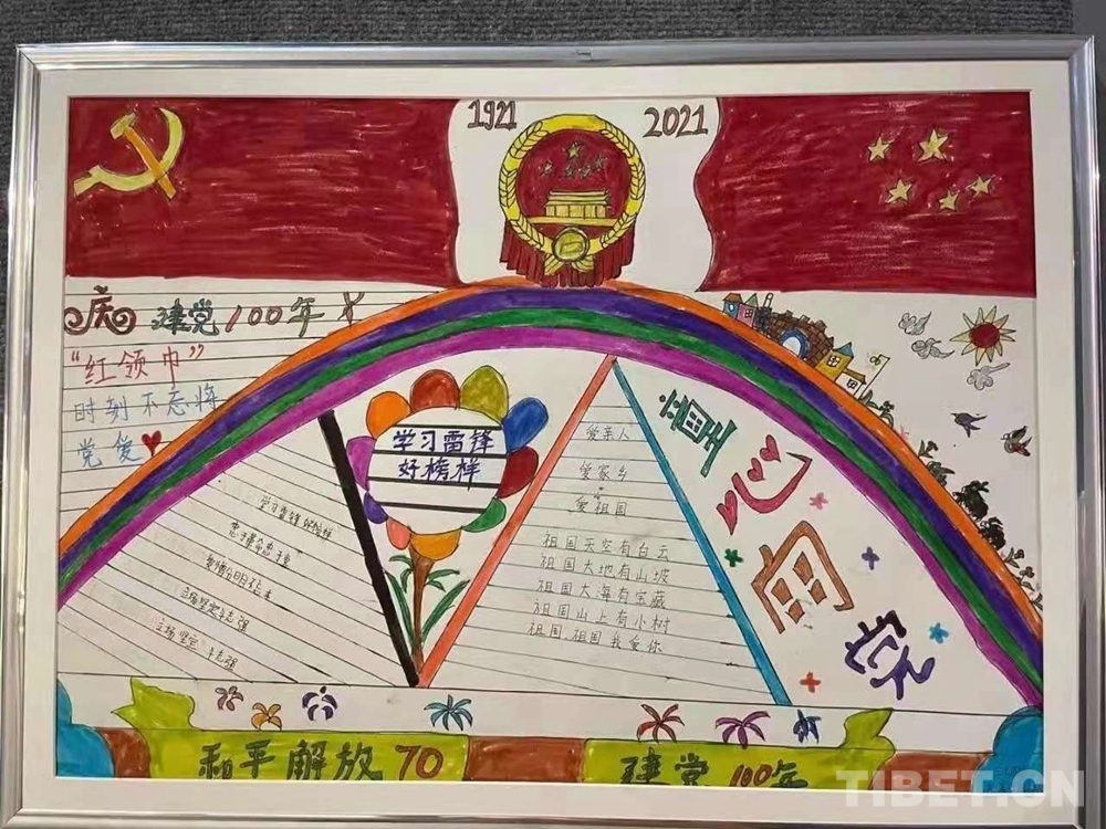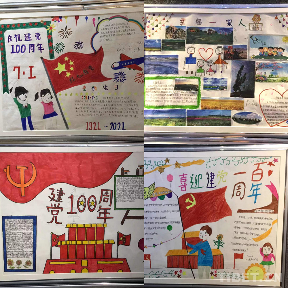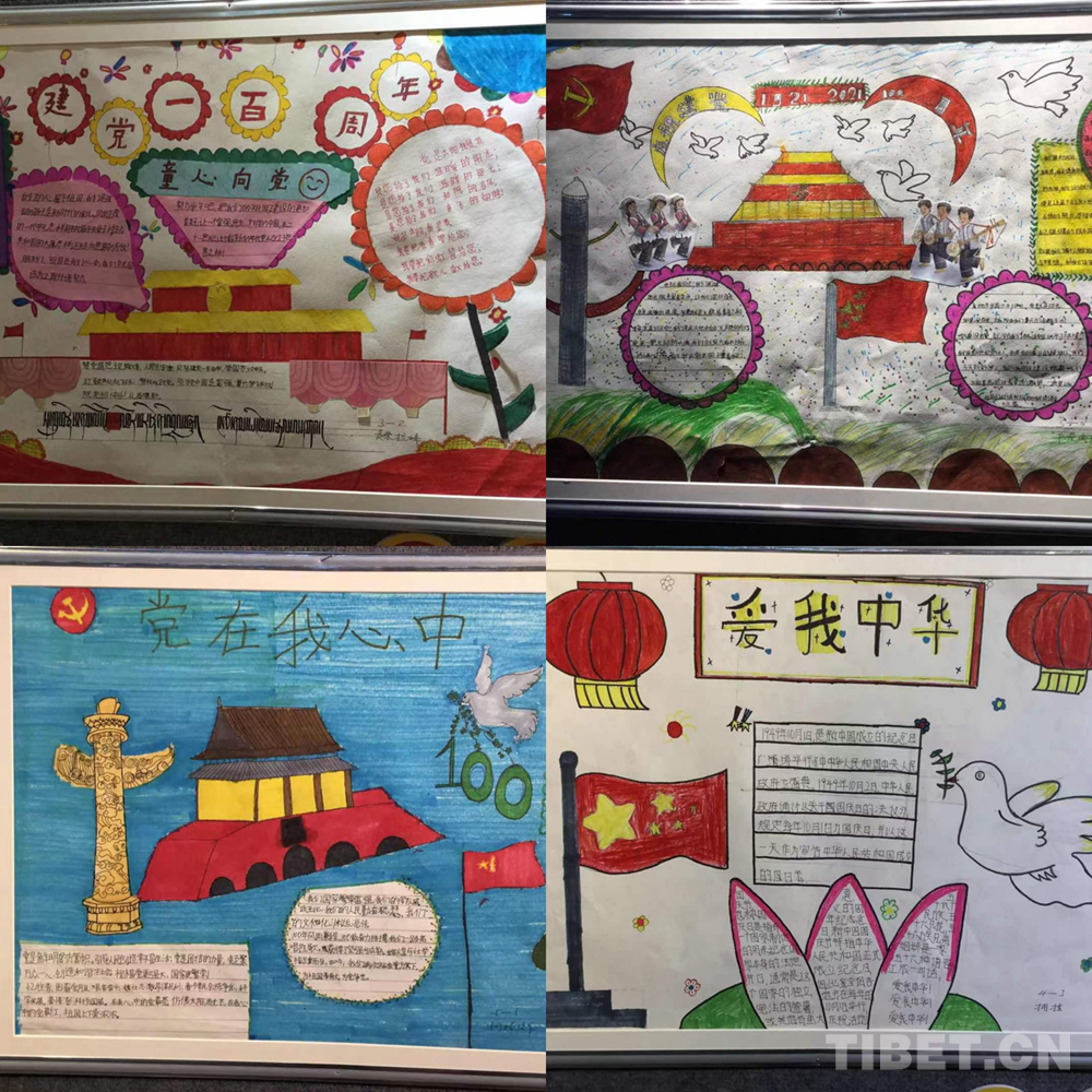 此次展覽是在慶祝中國(guó)共產(chǎn)黨成立100周年、西藏和平解放70周年之際,舉辦的一次展示西藏少年精神面貌的少兒手抄報(bào)專題展。展覽從今年三月份開(kāi)始策劃,共展出240幅堆龍德慶區(qū)小學(xué)生手抄報(bào)。