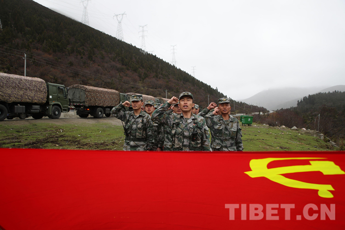中國西藏網(wǎng)訊 近日,西藏軍區(qū)某運輸旅執(zhí)行川藏線方向的運輸任務(wù)車隊,到達迫龍?zhí)祀U時,開展了“重溫入黨誓詞、爭當(dāng)保障尖兵”活動。“我志愿加入中國共產(chǎn)黨,我宣誓……”鏗鏘有力的誓言在崇山峻嶺中回蕩。