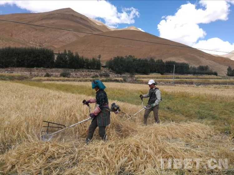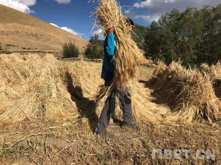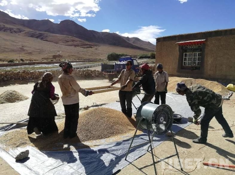 工作隊(duì)根據(jù)在前期深入群眾家中和田間地頭了解到的“孤困寡”等人群在秋收中存在勞動(dòng)力緊缺等問題,號(hào)召全體駐村隊(duì)員和村黨員干部組成青稞秋收黨員志愿服務(wù)隊(duì)自2017年9月13日起,對(duì)村孤寡戶、缺乏勞動(dòng)力戶及特困戶進(jìn)行秋收幫扶,僅用3天就完成困難戶的收割,解決了他們勞力緊缺的燃眉之急。9月底,拉木堆村的秋收工作已經(jīng)進(jìn)入收尾階段。村民們都說,今年因?yàn)橛惺崭顧C(jī),收割時(shí)間比去年縮短了兩天。當(dāng)全村408畝青稞全部收割完畢,堆置田地中晾曬。聽說今年糧食產(chǎn)量預(yù)計(jì)將比上年增收10%左右,再創(chuàng)新高,從干部到群眾,人人樂開了花。