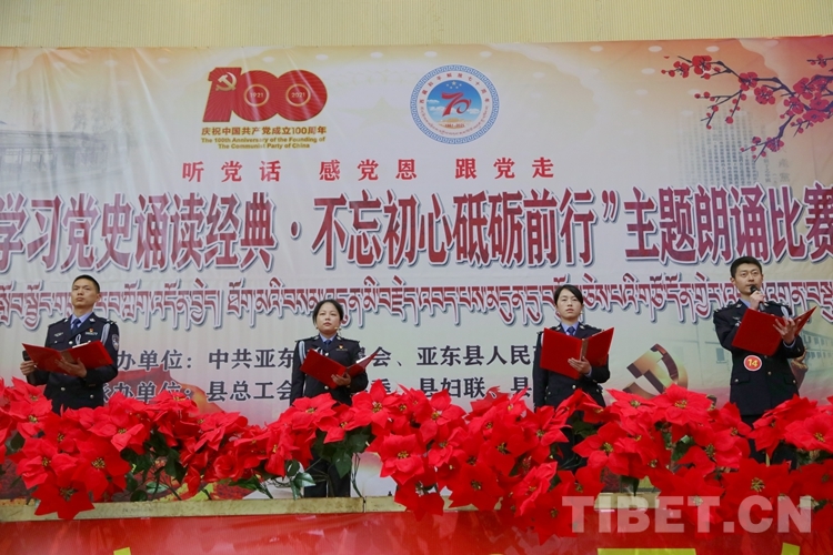 圖為西藏亞東出入境邊防檢查站參加亞東縣“學習黨史誦讀經典、不忘初心砥礪前行”主題朗誦比賽