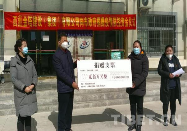 圖為西藏金塔集團(tuán)向日喀則市政府捐贈(zèng)疫情防控資金