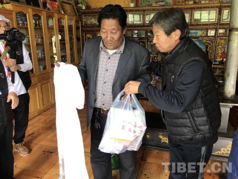 圖為“同心·共鑄中國心”醫(yī)護志愿者為德青老人送上慰問品 圖片由“同心·共鑄中國心”組委會供圖
