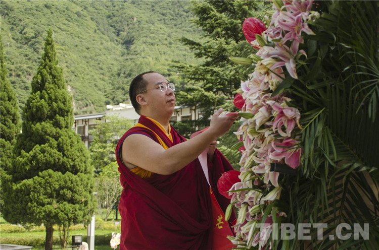 圖為班禪向革命烈士敬獻(xiàn)花籃 攝影:歐帆