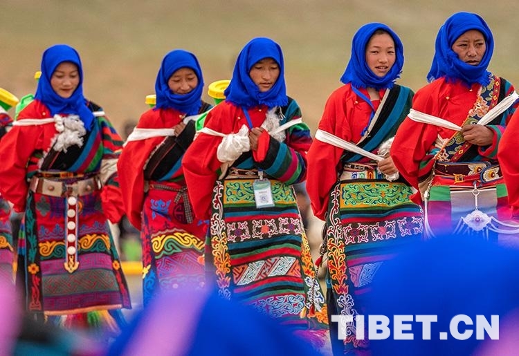 圖為7月25日,班戈縣第七屆納木錯文化旅游民俗風(fēng)情賽馬藝術(shù)節(jié)開幕式上的文藝表演 攝影:趙耀