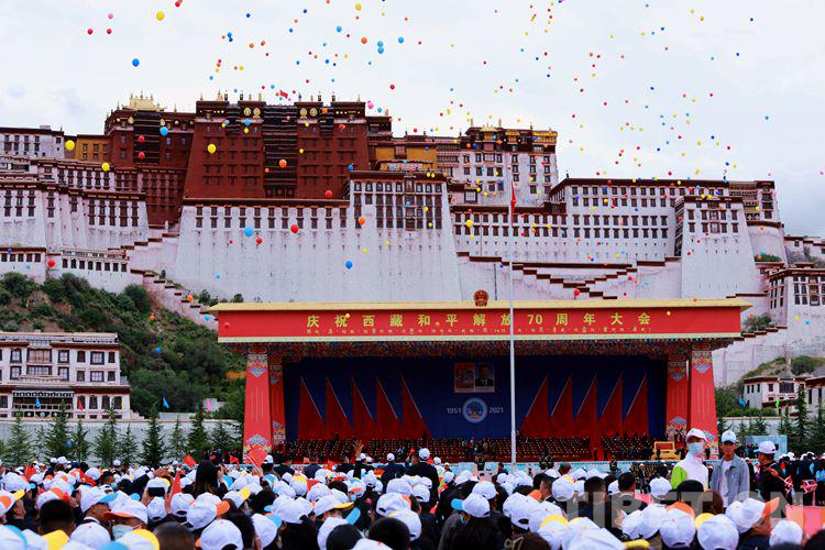 8月19日,西藏自治區(qū)2萬多名各族干部群眾歡聚在布達拉宮廣場,參加慶祝西藏和平解放70周年大會。