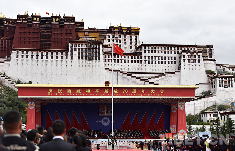 中國西藏網(wǎng)訊 彩旗飄揚、花團錦簇,古城拉薩到處洋溢著喜慶的節(jié)日氛圍。8月19日上午,西藏各族干部群眾歡聚在布達拉宮廣場,熱烈慶祝西藏和平解放70周年。