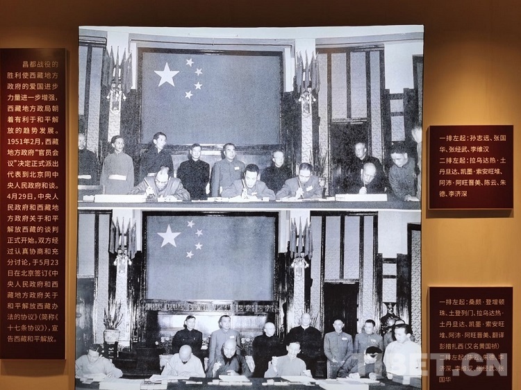 圖為展廳內(nèi)《十七條協(xié)議》簽訂的歷史圖片 攝影:王淑