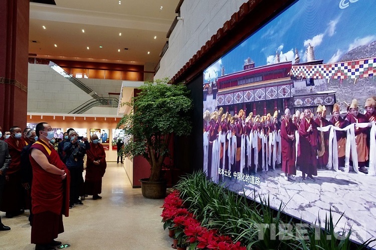 2021年7月21日至23日,習(xí)近平總書記親臨西藏考察調(diào)研,發(fā)表重要講話,充分肯定西藏經(jīng)濟(jì)社會(huì)發(fā)展各項(xiàng)事業(yè)取得的巨大成就,就進(jìn)一步做好新時(shí)代西藏各項(xiàng)工作提出了明確要求。在報(bào)道習(xí)近平總書記考察西藏新聞的數(shù)字屏前,班禪駐足停留,認(rèn)真觀看有關(guān)報(bào)道,不時(shí)低頭沉思。