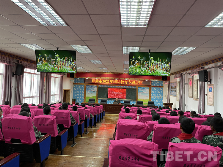 當(dāng)日下午,邀請(qǐng)那曲軍分區(qū)干部走進(jìn)校園為那曲市二中學(xué)生開展一次國(guó)防教育專題講座。專題講座開始前,首先由七年級(jí)格桑次仁和巴桑旺姆同學(xué)為大家深情朗誦《請(qǐng)黨放心 強(qiáng)軍有我》,一首詩(shī)詞朗誦把大家緩緩帶入課堂。由那曲軍分區(qū)唐鵬同志運(yùn)用豐富的知識(shí)和大量史實(shí),圍繞國(guó)防教育的重要意義等內(nèi)容為大家作了一場(chǎng)精彩的講座,利用媒體視頻、圖片資料給師生們講解了我國(guó)國(guó)防現(xiàn)狀、國(guó)防建設(shè)的重要作用,讓學(xué)生掌握基本軍事知識(shí)技能,加深對(duì)軍隊(duì)的認(rèn)識(shí)和理解,整個(gè)講座旁征博引,數(shù)據(jù)翔實(shí),觀點(diǎn)敏銳,既有清晰的歷史脈絡(luò),又有具體事件的介紹,在同學(xué)中引起了強(qiáng)烈共鳴。