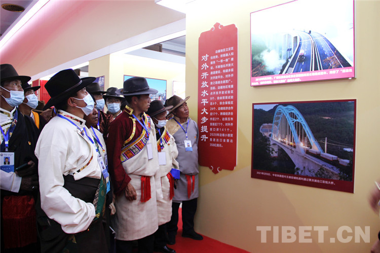 圖為西藏自治區(qū)基層干部步入“全國(guó)興邊富民成就展”展廳 攝影:王茜