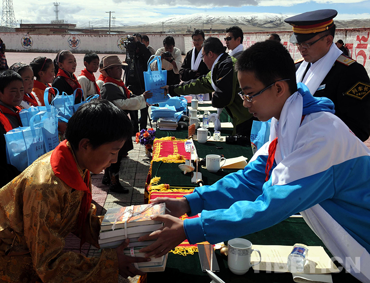 為了幫助西藏貧困地區(qū)的藏族孩子學(xué)到更多的科學(xué)文化知識(shí),豐富他們的業(yè)余文化生活,新華社北京分社在捐贈(zèng)中號(hào)召黨團(tuán)員積極參與,共捐藏漢文書籍1000多冊(cè),并委托我將這些書送到西藏孩子手中。