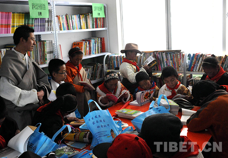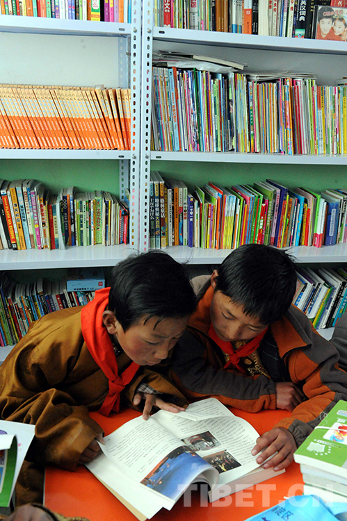 這是西藏那曲地區(qū)那曲縣(現(xiàn)那曲市色尼區(qū))羅瑪鎮(zhèn)中心小學(xué)學(xué)生在新建的“愛(ài)心書屋”快樂(lè)地讀書(唐召明2014年5月29日攝)
