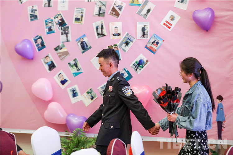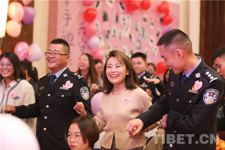 活動(dòng)過程中,總站形象宣傳片《我是誰》,向女嘉賓們展現(xiàn)了西藏移民管理警察的職業(yè)特點(diǎn),使女嘉賓對(duì)民警工作職責(zé)產(chǎn)生了初步的認(rèn)識(shí)。在主持人的引導(dǎo)下,精彩的才藝展示和豐富的游戲環(huán)節(jié)很快將現(xiàn)場(chǎng)氣氛推向一個(gè)接一個(gè)的高潮?;?dòng)游戲“牽手牽愛”“心有靈犀”“守護(hù)愛情”“唯愛接力”通過聆聽詩句抓緊手指、借助比劃你問我答,相互協(xié)助完成任務(wù)等方式增進(jìn)了男女嘉賓之間的了解和默契,促進(jìn)了相互之間更好交流。男女嘉賓才藝表演和日喀則邊境管理支隊(duì)1753樂隊(duì)送上的精彩曲目,令活動(dòng)現(xiàn)場(chǎng)青春洋溢。最終,18對(duì)男女嘉賓互生情愫,牽手成功,36對(duì)交換聯(lián)系方式,開啟更加深入的幸福交流。