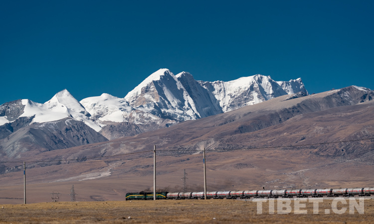 圖為念青唐古拉雪山下的青藏鐵路 攝影:趙耀