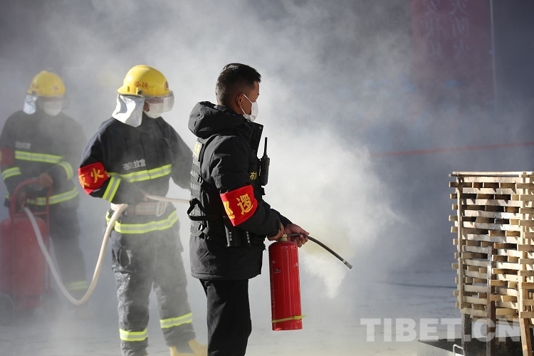 圖為布達拉宮管理處義務(wù)消防隊消防實操演練 攝影:王佳豪