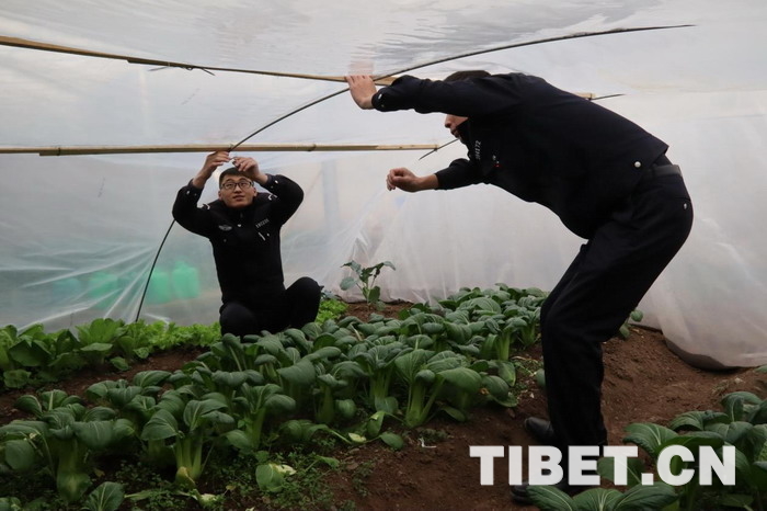 “每到冬天,單位溫室保溫效果就會(huì)降低,嚴(yán)重影響了蔬菜種植工作的順利開展,有時(shí)候都吃不到新鮮的蔬菜。一次偶然機(jī)會(huì),我了解到這種‘棚中棚’種植技術(shù),保溫效果很好,蔬菜長(zhǎng)勢(shì)也很好,準(zhǔn)備明年在各基層單位進(jìn)行推廣?!痹摯箨?duì)大隊(duì)長(zhǎng)尼瑪說。