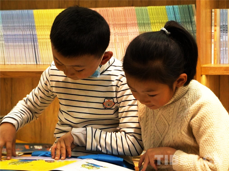 圖為周末相約來(lái)到書(shū)店讀書(shū)的丹增德慶和她的小伙伴。攝影:澤仁措姆