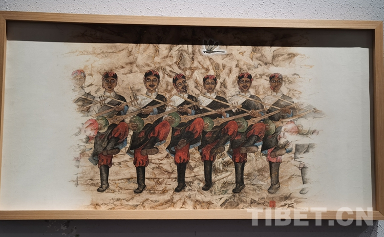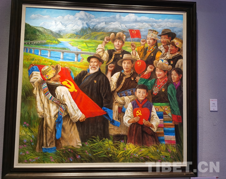 “此次展覽相對(duì)齊全,體現(xiàn)了當(dāng)代藝術(shù)家,在總書記文藝系列講話的鼓舞和指引下,以人民為中心關(guān)注生活,關(guān)注西藏。認(rèn)真地用自己的語言、藝術(shù),思維來表現(xiàn)社會(huì)主義新西藏方方面面的日新月異和成果,我覺得這樣的成果是實(shí)實(shí)在在地向中國共產(chǎn)黨成立100周年和西藏和平解放70周年獻(xiàn)禮?!敝嫾翼n書力說。