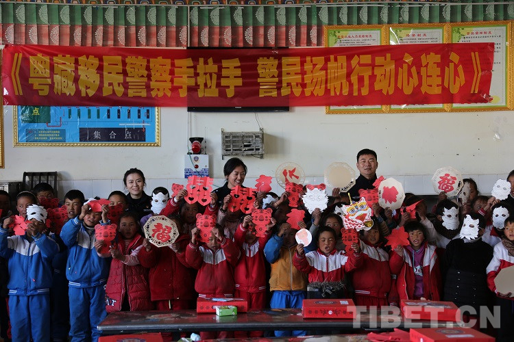 隨后,民警們?yōu)橥瑢W(xué)們發(fā)放了拉薩邊檢站和東莞邊檢站共同準(zhǔn)備的兒童手工DIY禮盒,并和同學(xué)們一起完成剪紙手工制作,共同感受著中華傳統(tǒng)文化美學(xué),體驗(yàn)手工制作的樂趣?,F(xiàn)場歡聲笑語,其樂融融。