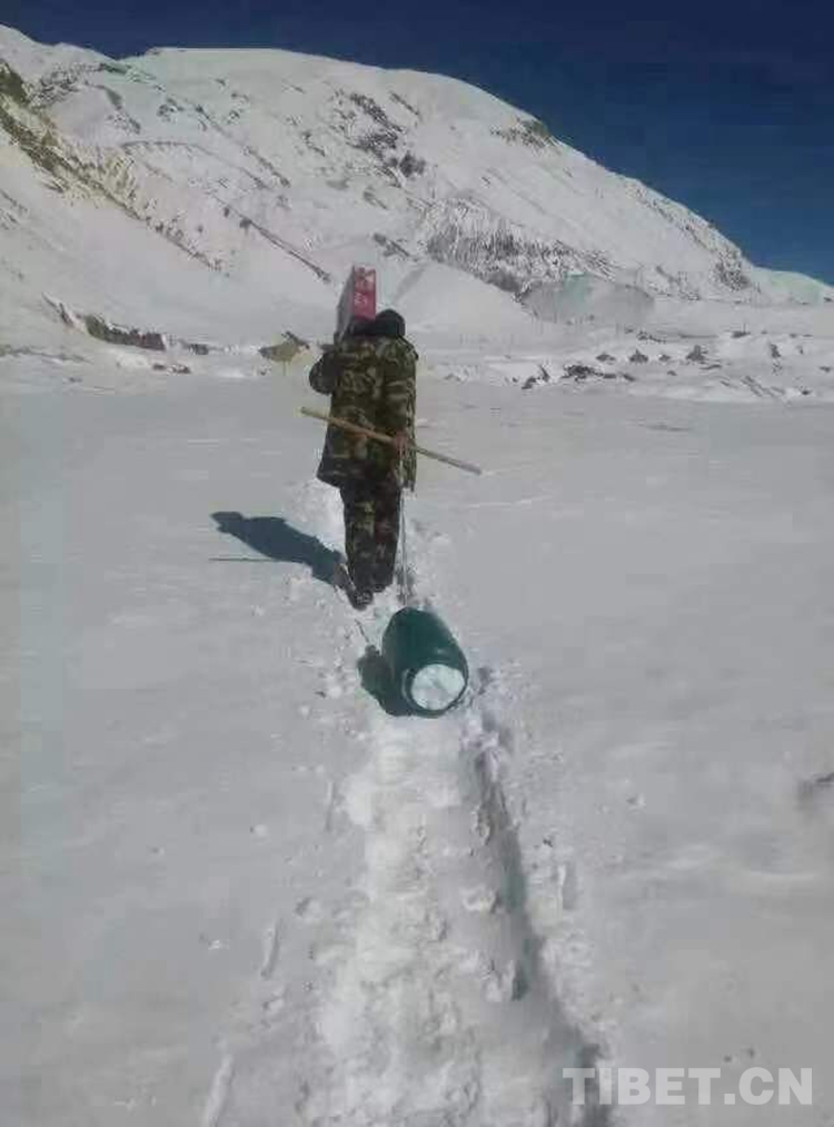 圖為尼瑪國杰與戰(zhàn)友一起輸送補給物資回執(zhí)勤點路上