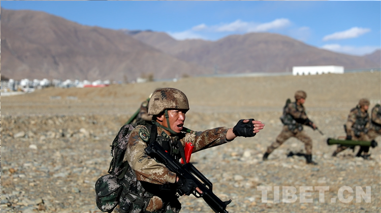 圖為拉薩警備區(qū)某團進行實地訓練