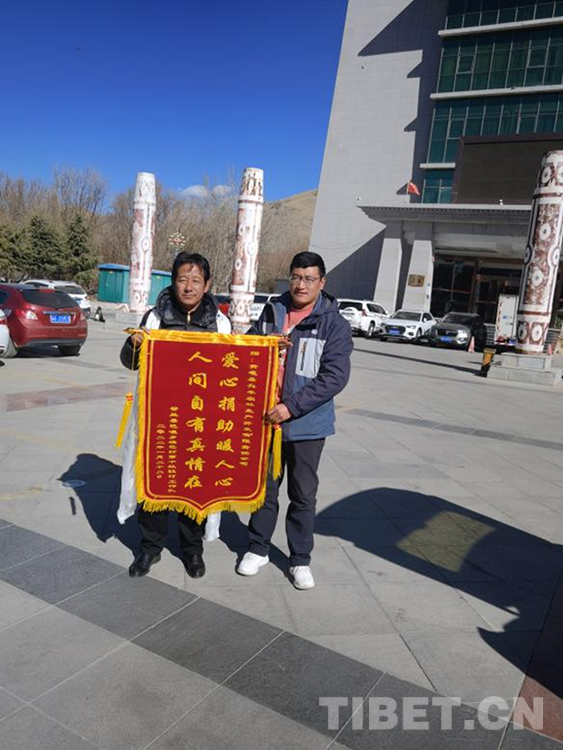 為了表示謝意,雄巴村駐村工作隊成員赴貢嘎縣為興豐農(nóng)林生產(chǎn)開發(fā)有限責(zé)任公司,當(dāng)面道謝并為該公司送上錦旗及該村特產(chǎn)干魚。(中國西藏網(wǎng) 記者/拉姆 圖片由雄巴村駐村工作隊提供)