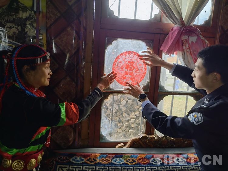 “阿佳,我們來給你送祝福,貼春聯(lián)啦”當(dāng)天早上,民警一大早就拿起了提前準(zhǔn)備好的春聯(lián)與福字,來到了群眾家中,一起貼春聯(lián)、貼福字,民警們忙得不亦樂乎,將轄區(qū)的每個角落都裝扮得紅紅火火,濃濃的節(jié)日氣息洋溢在每個角落?!捌綍r我們民警和村民相處得很好,要過年了,我們來到老鄉(xiāng)家里,給他們幫忙,與他們一起共慶祥和年?!绷种ミ_(dá)木邊境派出所民警王濤說道。這天,邊境派出所民警還與群眾拉家常、話團(tuán)結(jié)、講春節(jié)習(xí)俗,喜慶的氛圍中,映襯的是一張張真誠、溫暖的笑臉,涌動的是直抵心靈的溫情和快樂。
