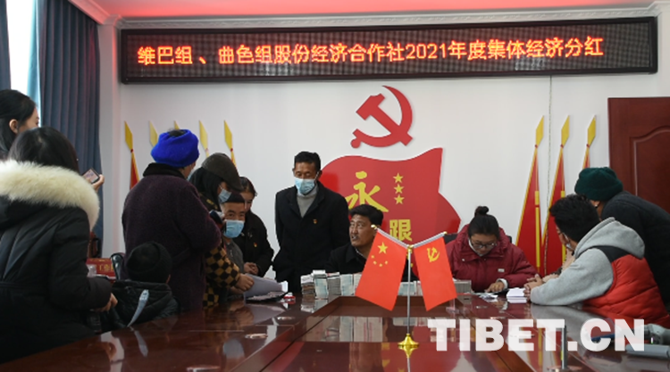 中國(guó)西藏網(wǎng)訊 在藏歷新年來(lái)臨之際,2月23日,西藏自治區(qū)拉薩市城關(guān)區(qū)奪底街道維巴村維巴組、曲色組股份經(jīng)濟(jì)合作社2021年度集體經(jīng)濟(jì)分紅,399戶共發(fā)放530650元分紅資金。