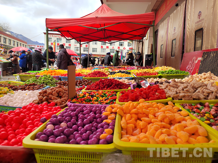 中國(guó)西藏網(wǎng)訊 伴隨著藏歷新年的悄然臨近,西藏各地處處洋溢著節(jié)日的喜慶氛圍。西藏自治區(qū)山南市天馬國(guó)際商業(yè)中心,切瑪盒、卡塞、酥油花等琳瑯滿目的年貨供應(yīng)充足,選購(gòu)年貨的市民絡(luò)繹不絕,是一場(chǎng)紅紅火火的熱鬧景象的“年貨節(jié)”。